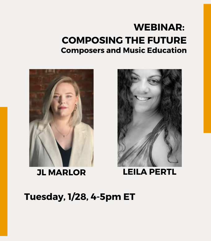 New music isn’t just for adults - a growing population of grade school students are also pushing the boundaries of music creation. Leila Pertl, Instructor in Music Education & Music Education Curator for the Mile of Music, will join ACO Education Coordinator JL Marlor to offer insights on what a successful collaboration between composers and grade schools looks like.