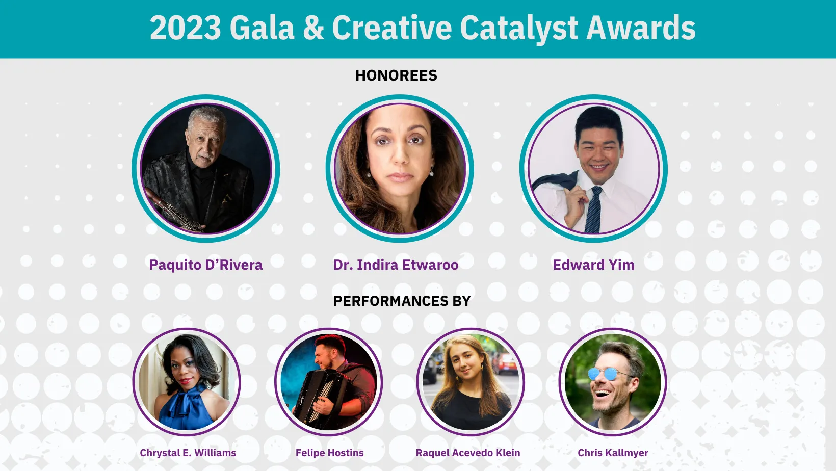 $350 of this purchase is tax-deductibleTRIBUTESI cannot attend, but I’d like to place a tribute in the program book:Back Cover (color) 5” x 7 5/8” $1,500 Full page (B&W): 5” x 7 5/8” $500½ page (B&W): 5” x 3 11/16” $300¼ page (B&W): 2 3/8” wide x 3 11/16” $175ABOUT THE HONOREESNEA Jazz Master Paquito D'Rivera defies categorization. The winner of 14 combined Grammy and Latin Grammy awards with his celebrated musical career that reflects a dedication to jazz, bebop, and Latin music, including his impressive contributions to classical music. In his passion to bring Latin repertoire to greater prominence, D'Rivera has successfully created and championed all types of classical compositions, including chamber compositions and symphonies. His second National Symphony commission "The Journey" premiered in 2022 with Yo-Yo Ma as Soloist.Dr. Indira Etwaroo is an award-winning producer, director, scholar, and non-profit arts leader, and currently serves as the Director of the Steve Jobs Theater at Apple. Previously, she led RestorationART and The Billie Holiday Theatre through radical growth, including the launch of the first national strategic plan for Black theaters, The Black Seed.As Chief Content Officer and Senior Vice President of WQXR, Edward Yim is responsible for developing and implementing a strategic vision that helps WQXR reach a broader, more inclusive audience, drives digital innovation, bolsters the station’s role in New York City’s arts and culture ecosystem, and increases WQXR’s relevance and service to the city’s communities. Prior to joining WQXR, he served as President & CEO of the American Composers Orchestra.